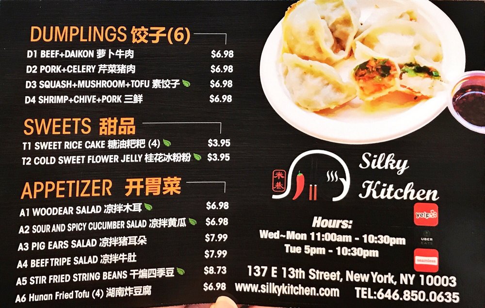 Introducing Silky Kitchen, a casual and trendy restaurant located at 137 E 13th St in New York, NY. Known for their vegan and vegetarian options, this restaurant offers delivery, takeout, reservations, and even catering services. With a cozy and comfortable atmosphere, Silky Kitchen is great for groups, families, and solo diners alike. Customers rave about the quick service, delicious dishes like hot and sour veg noodle soup and spicy squid with dry noodles. The self-serve kiosk and variety of options make dining here a breeze. Whether you're in the mood for a flavorful bite or a hearty meal, Silky Kitchen is a must-try for those looking for a quick and satisfying dining experience.